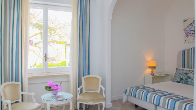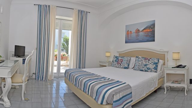Das Hotel Villa Sanfelice bietet 38 gemütliche Zimmer, die auf drei Etagen verteilt sind (über Treppen erreichbar), die darauf ausgerichtet sind, einen entspannten und komfortablen Aufenthalt zu gewährleisten. Die meisten Zimmer blicken auf den ruhigen Garten des Hotels und schaffen so eine heitere und erholsame Atmosphäre. Viele Zimmer verfügen über geräumige private Terrassen, die ideal sind, um die Sonne von Capri in völliger Entspannung zu genießen.