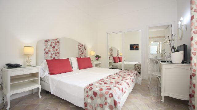 Alle Zimmer sind mit allen Annehmlichkeiten ausgestattet, darunter Klimaanlage, TV, Minibar, Safe, Haartrockner, um alle Bedürfnisse der Gäste zu erfüllen. Kleine Haustiere sind in den Zimmern mit Terrasse willkommen. Auf Anfrage kann gegen Aufpreis ein drittes Bett oder ein Kinderbett im Zimmer aufgestellt werden.